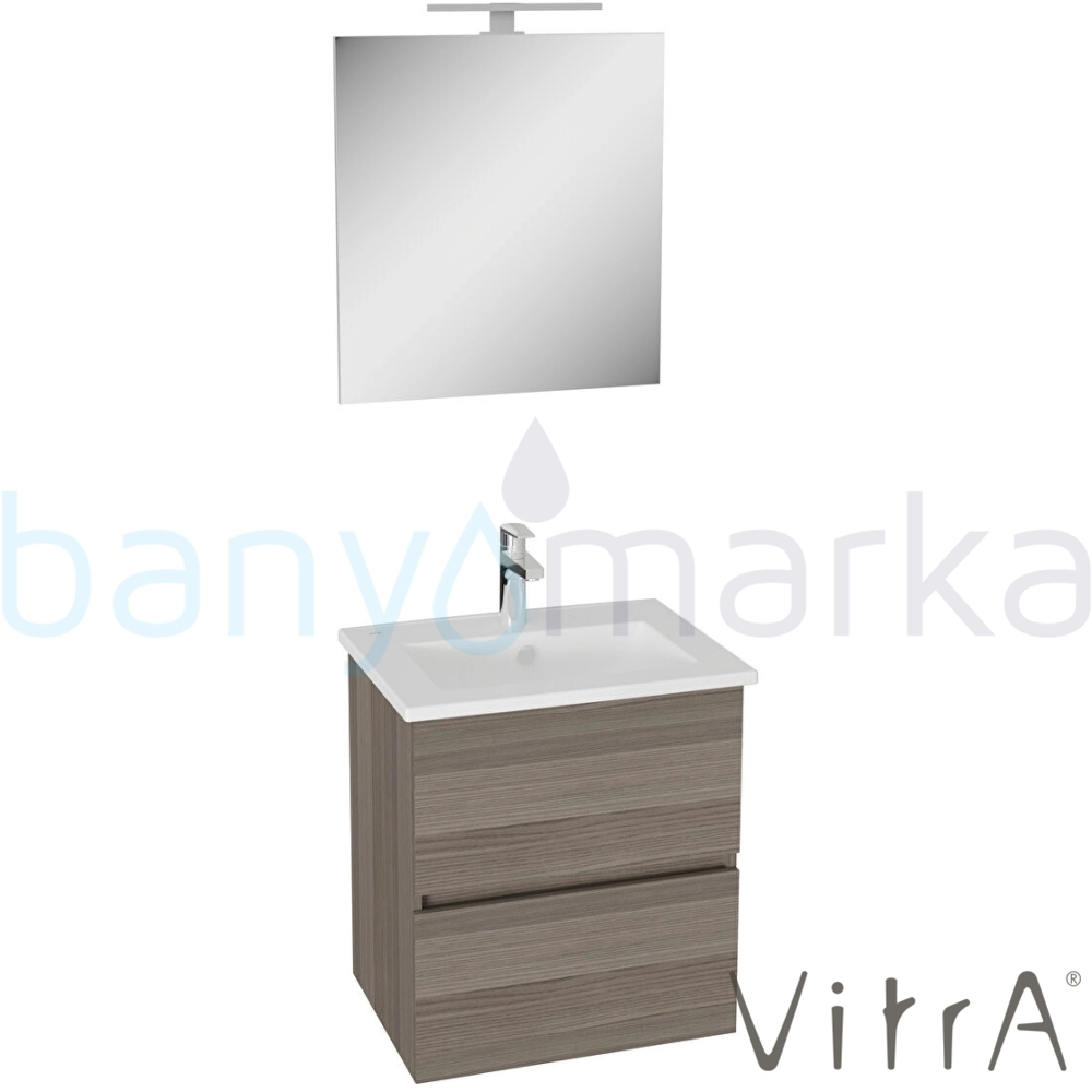 Vitra Mia Plus Square Demonte Set, 60 cm, Çift Çekmeceli, (Lavabo Dolabı, Aydınlatmalı Ayna), Cordoba