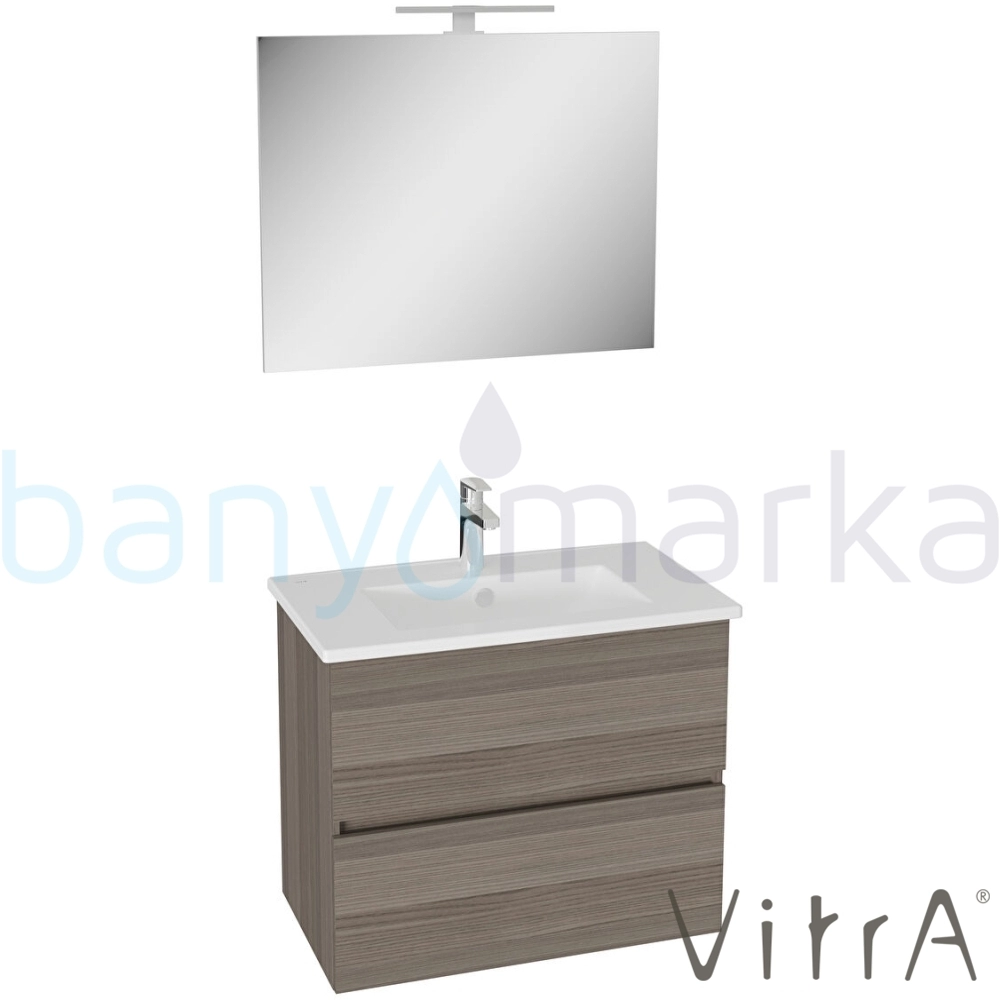 Vitra Mia Plus Square Demonte Set, 80 cm, Çift Çekmeceli, (Lavabo Dolabı, Aydınlatmalı Ayna), Cordoba