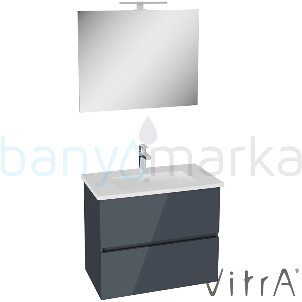 Vitra Mia Plus Square Demonte Set, 80 cm, Çift Çekmeceli, (Lavabo Dolabı, Aydınlatmalı Ayna), Parlak Antrasit