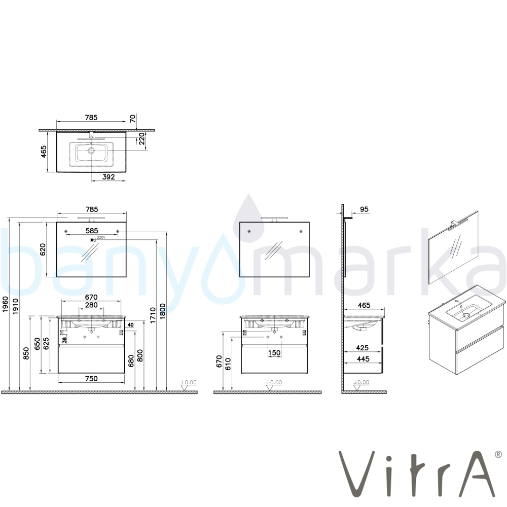 | Ürün Adı: | Vitra Mia Plus Square Demonte Set, 80 cm, Çift Çekmeceli, (Lavabo Dolabı, Aydınlatmalı Ayna), Parlak Antrasit |