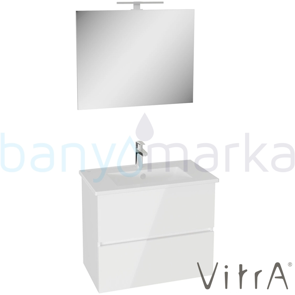 Vitra Mia Plus Square Demonte Set, 80 cm, Çift Çekmeceli, (Lavabo Dolabı, Aydınlatmalı Ayna), Parlak Beyaz
