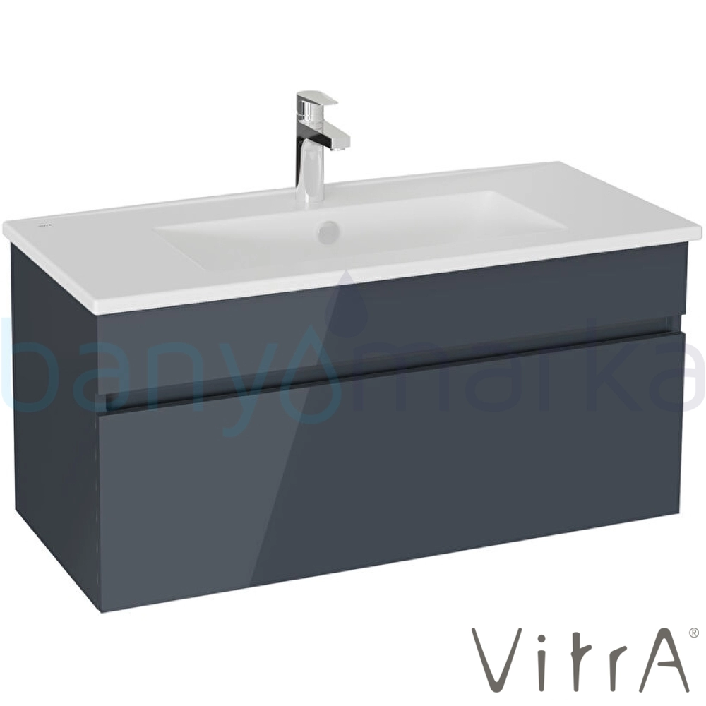 Vitra Mia Plus Square Tek Çekmeceli Lavabo Dolabı, 100 cm, Parlak Antrasit - 69777