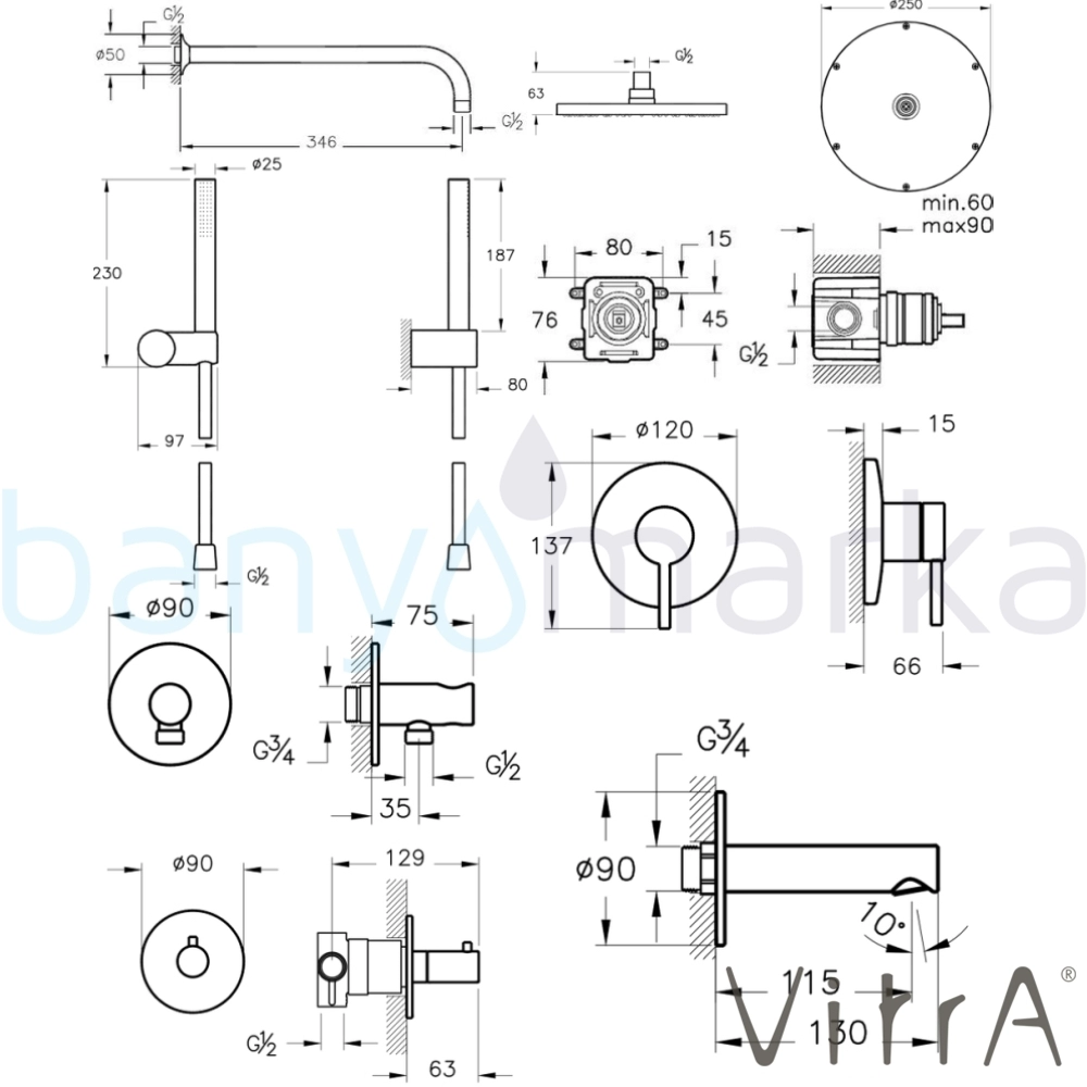 | Ürün Adı: | Vitra Origin Ankastre Banyo Bataryası, Tepe ve El Duşu, Çıkış Ucu Seti, Soft Bakır |
