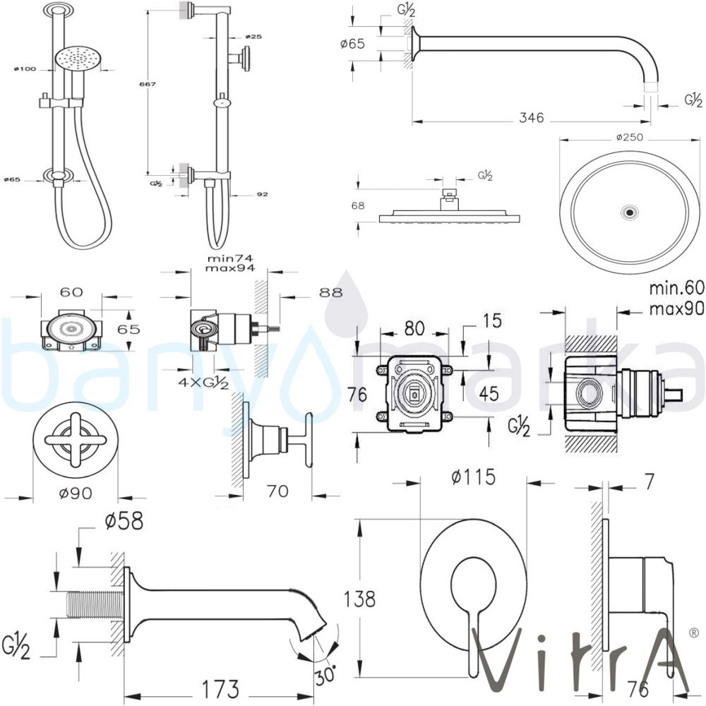 | Uyarı ve Genel Açıklamalar: | A4289625 kodlu Vitra Origin Classic Ankastre Duş Bataryası (Sıva Üstü Grubu) Fırçalı Altın, A42213 kodlu Artema Ankastre Duş Bataryası (Sıva Altı Grubu), A4289725 kodlu Vitra Origin Classic 3 Yollu Yönlendirici (Sıva Üstü Grubu) Fırçalı Altın, A42819 kodlu Vitra Suit Ankastre 3 Yollu Yönlendirici (Sıva Altı Grubu), A4579425 kodlu Vitra Origin Classic Duş Başlığı, 25 Cm, Fırçalı Altın, A4565225 kodlu Artema Duvardan Dirsek (Uzun), Fırçalı Altın, A4579525 kodlu Vitra Origin Classic 1F Sürgülü El Duşu Takımı, Fırçalı Altın ve A4289925 kodlu Vitra Origin Classic Çıkış Ucu, Fırçalı Altın sete dahildir. |