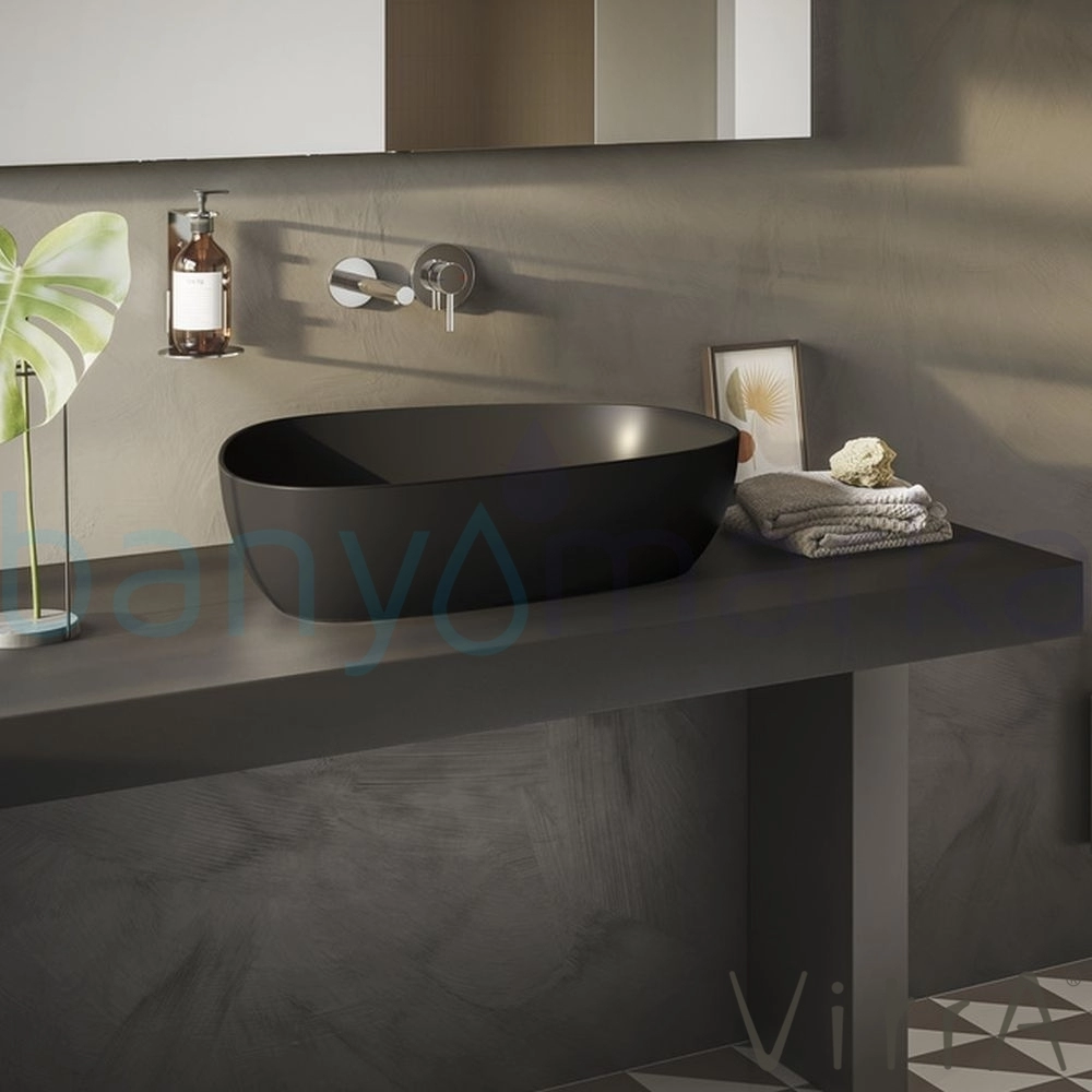 Vitra Outline Asimetrik Çanak Lavabo, 56 cm, Mat Siyah