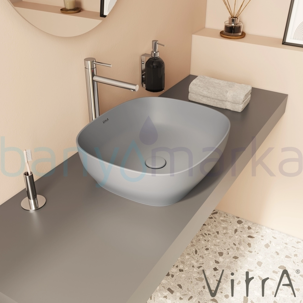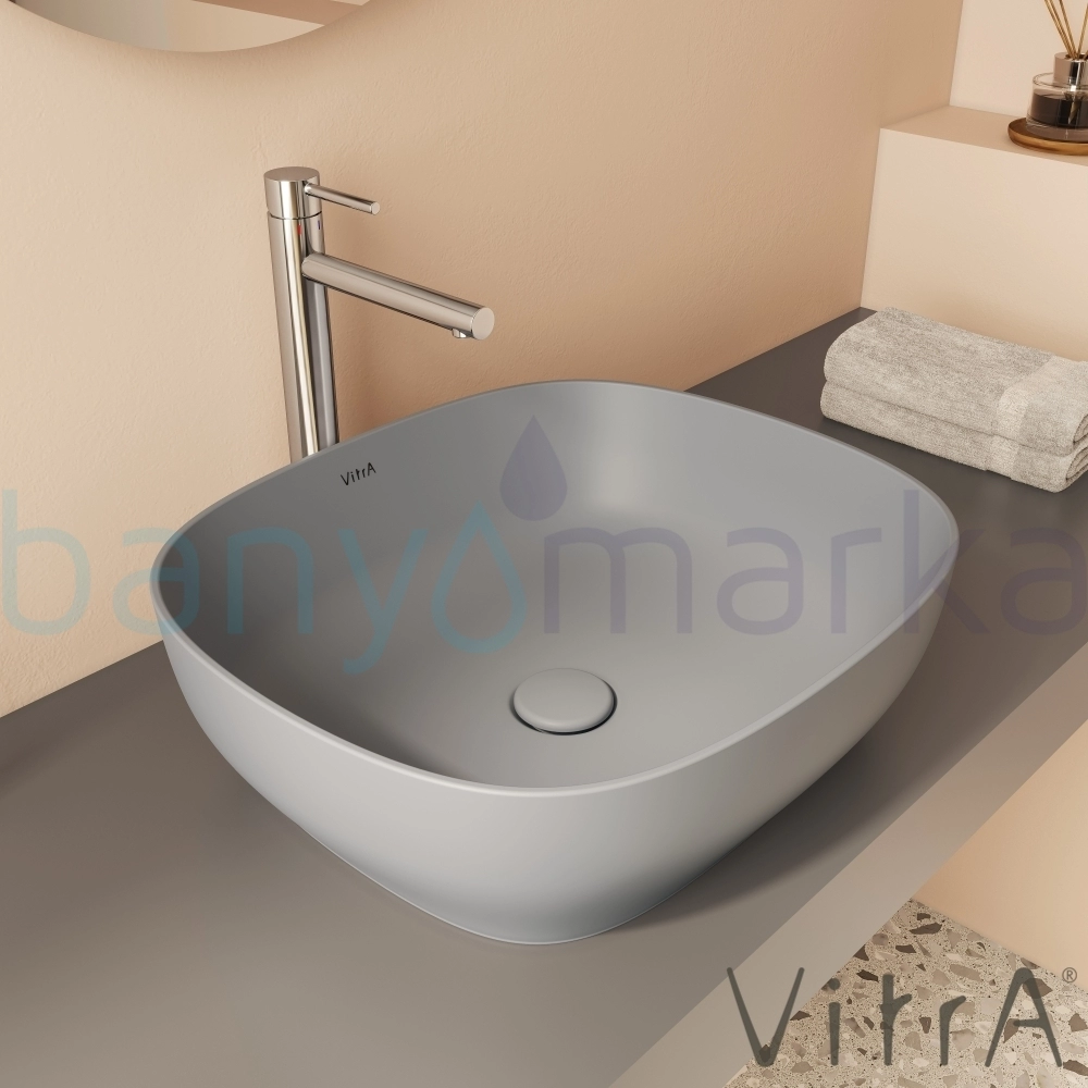 Vitra Outline Kare Çanak Lavabo, 48 cm, Mat Taş Gri