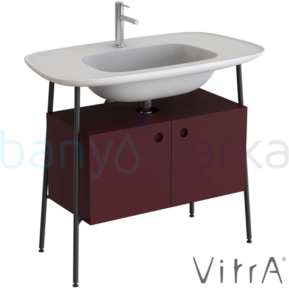 Vitra Plural Kapaklı Etajerli Lavabo Ünitesi, 100 cm, Mat Bordo / Mat Beyaz Lavabo - 80455