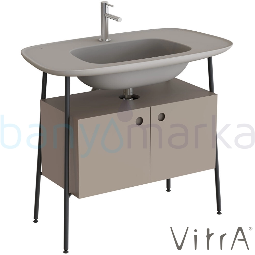 Vitra Plural Kapaklı Etajerli Lavabo Ünitesi, 100 cm, Mat Soft Bej / Mat Taupe Lavabo - 80447