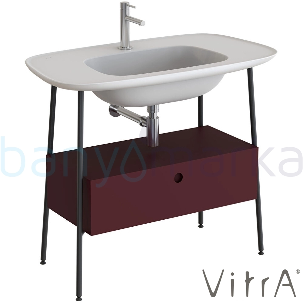 Vitra Plural Tek Çekmeceli Etajerli Lavabo Ünitesi, 100 cm, Mat Bordo / Mat Beyaz Lavabo - 80466