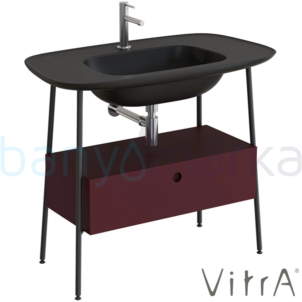 Vitra Plural Tek Çekmeceli Etajerli Lavabo Ünitesi, 100 cm, Mat Bordo / Mat Siyah Lavabo - 80467