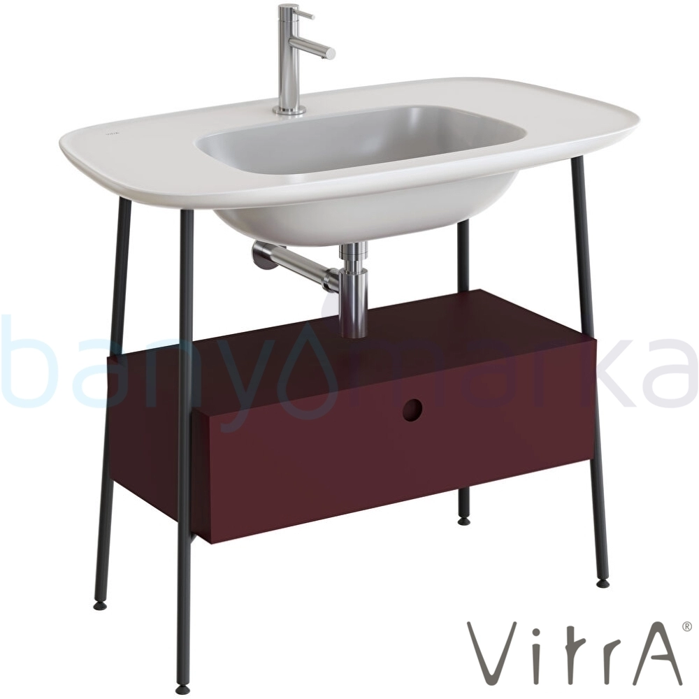 Vitra Plural Tek Çekmeceli Etajerli Lavabo Ünitesi, 100 cm, Mat Bordo / Parlak Beyaz Lavabo - 80465