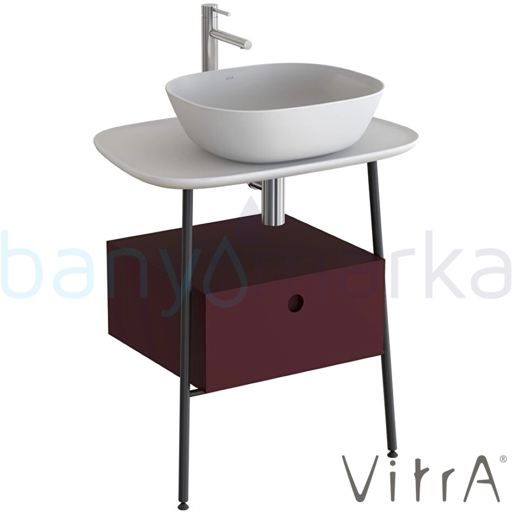 Vitra Plural Tek Çekmeceli Serbest Yüksek Lavabo Ünitesi, 70 cm, Mat Bordo / Mat Beyaz Seramik Tezgah - 80480