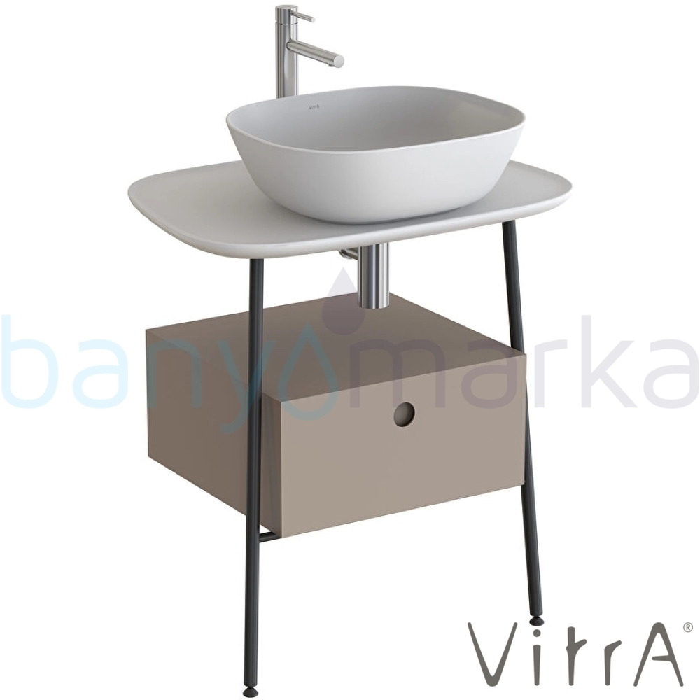 Vitra Plural Tek Çekmeceli Serbest Yüksek Lavabo Ünitesi, 70 cm, Mat Soft Bej / Mat Beyaz Seramik Tezgah - 80470