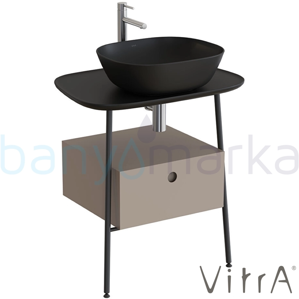 Vitra Plural Tek Çekmeceli Serbest Yüksek Lavabo Ünitesi, 70 cm, Mat Soft Bej / Mat Siyah Seramik Tezgah - 80471