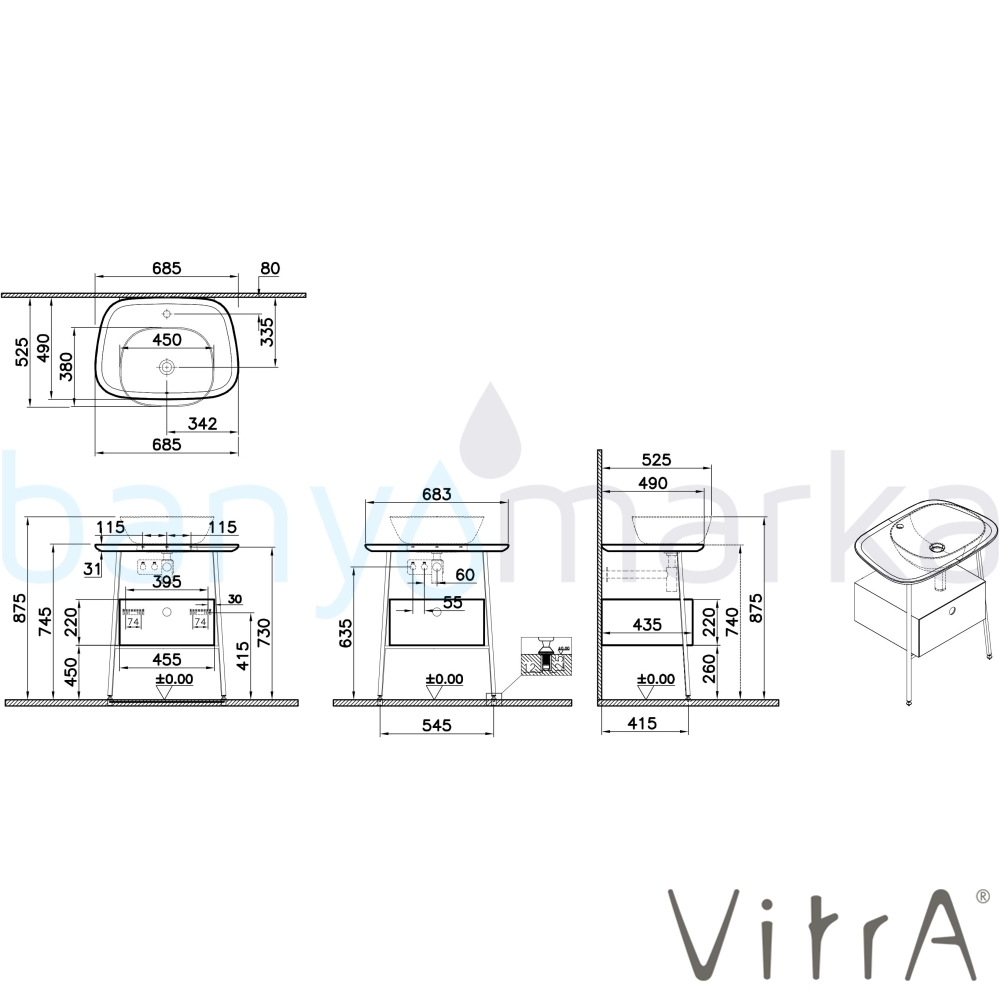 | Ürün Adı: | Vitra Plural Tek Çekmeceli Serbest Yüksek Lavabo Ünitesi, 70 cm, Mat Soft Bej / Mat Siyah Seramik Tezgah |