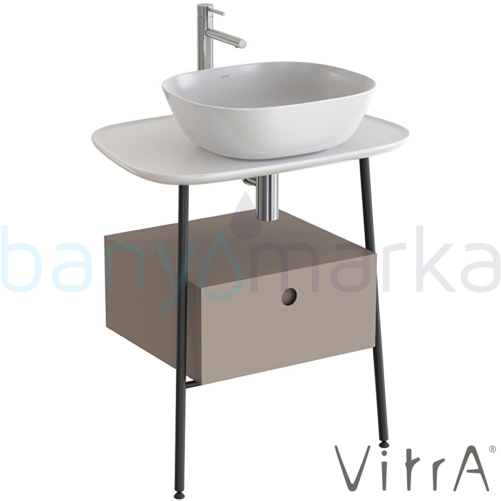 Vitra Plural Tek Çekmeceli Serbest Yüksek Lavabo Ünitesi, 70 cm, Mat Soft Bej / Parlak Beyaz Seramik Tezgah - 80469