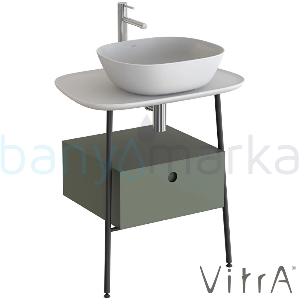 Vitra Plural Tek Çekmeceli Serbest Yüksek Lavabo Ünitesi, 70 cm, Retro Yeşil / Mat Beyaz Seramik Tezgah - 80473
