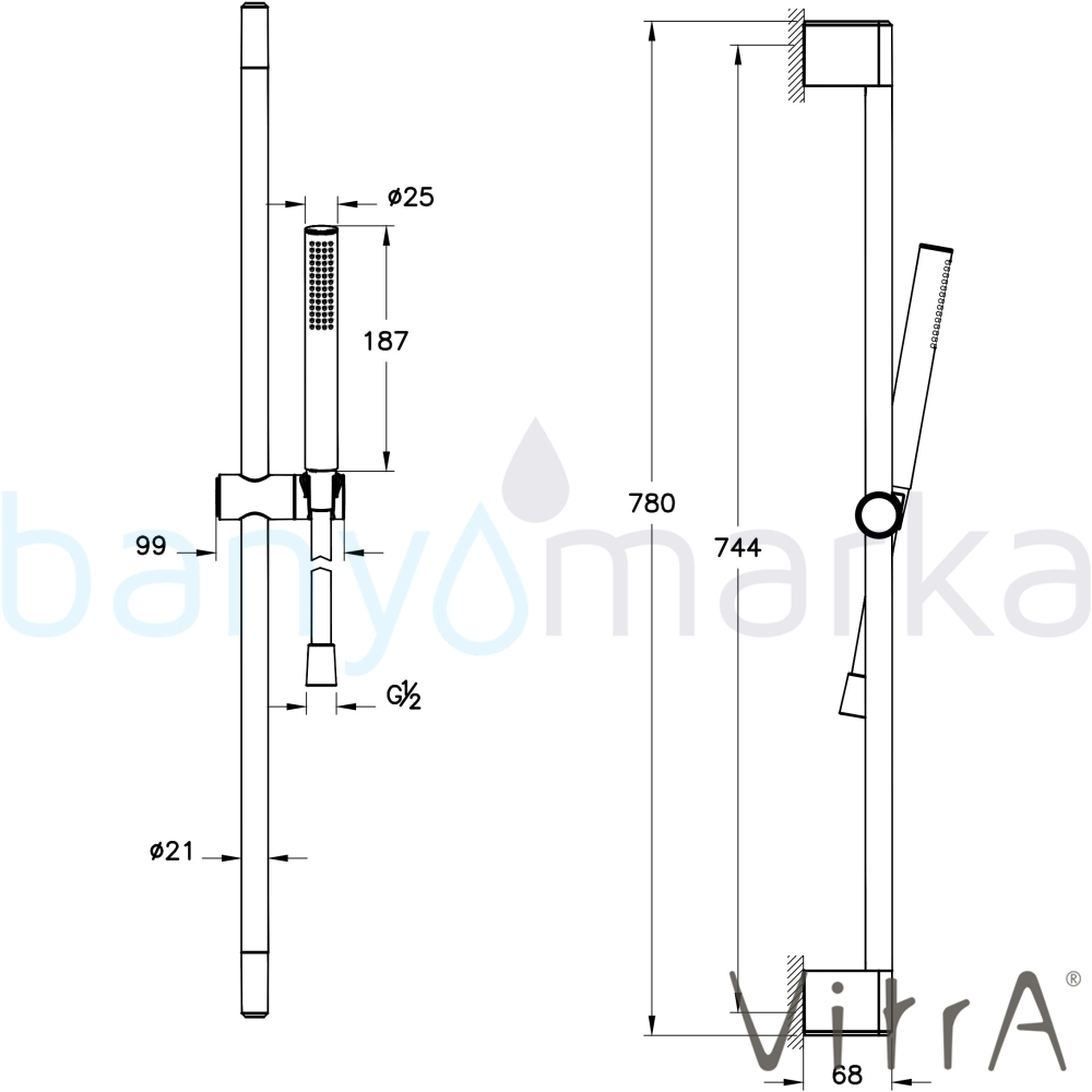 | Ürün Adı: | Vitra Prime Round Stick 1F Sürgülü El Duşu Takımı |