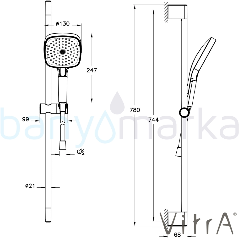 | Ürün Adı: | Vitra Prime Square 3F Sürgülü El Duşu Takımı, Soft Bakır |