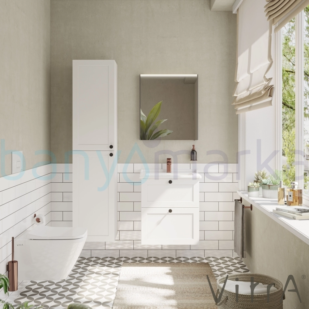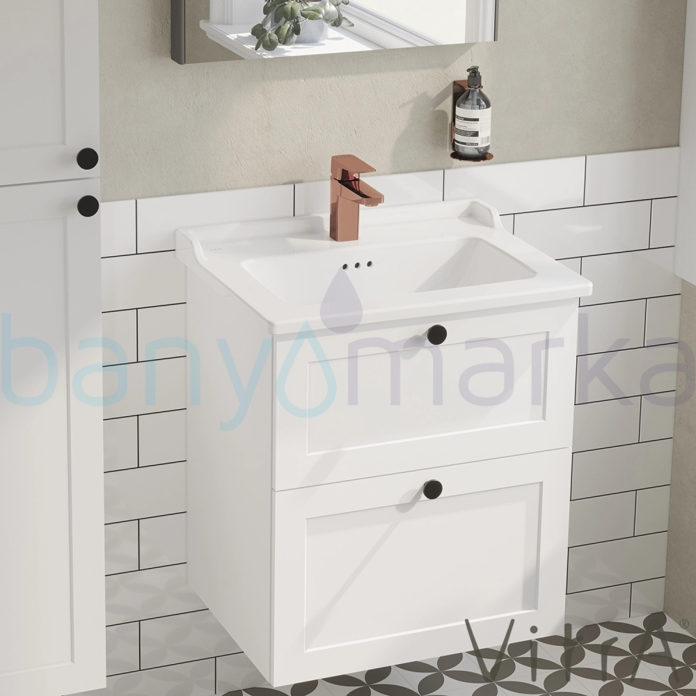 Vitra Root Classic Çift Çekmeceli Lavabo Dolabı, 60 cm, Mat Beyaz (Klasik Lavabo Dahil)
