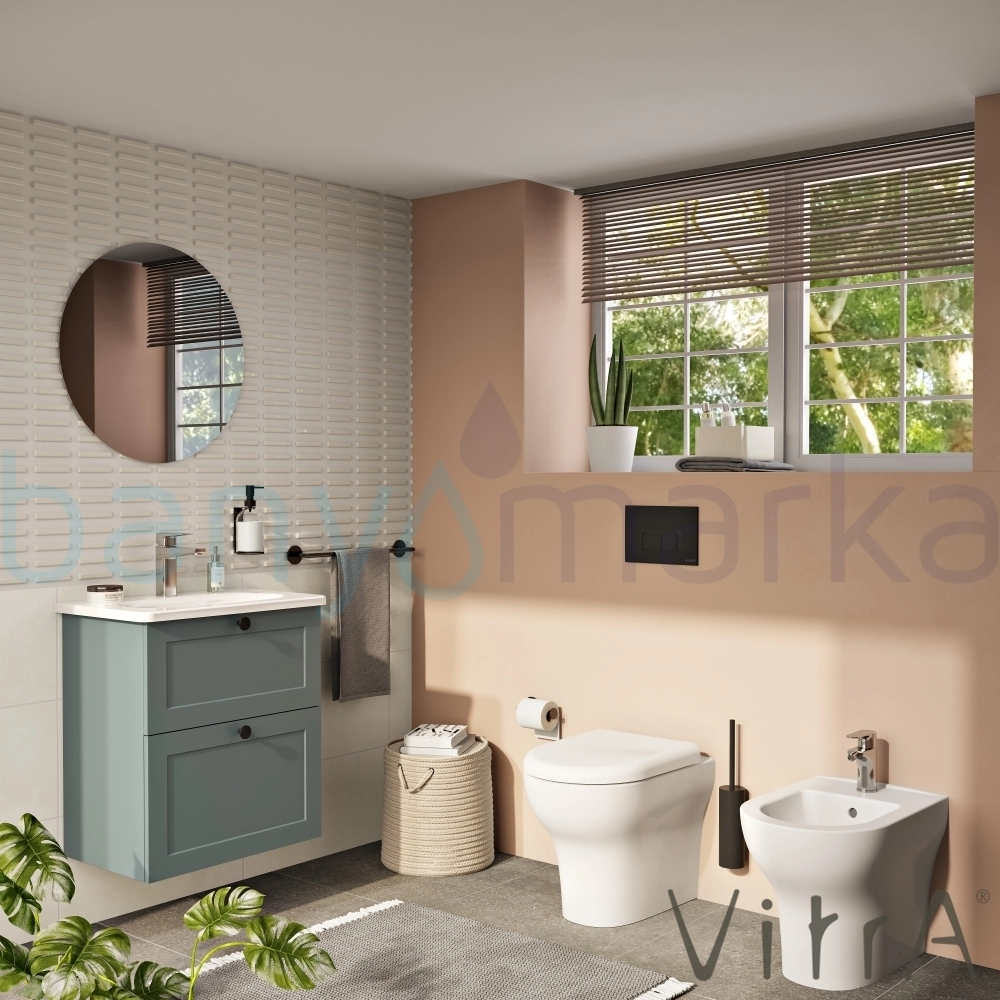 Vitra Root Classic Çift Çekmeceli Lavabo Dolabı, 60 cm, Mat Fiyord Yeşili (Klasik Lavabo Dahil)