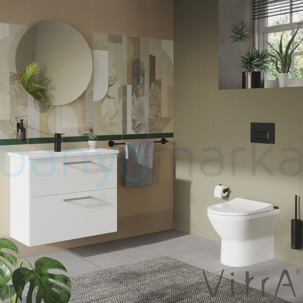 Vitra Root Flat Çift Çekmeceli Dar Lavabo Dolabı, 80 cm, Mat Kaya Gri (Köşeli Lavabo Dahil)