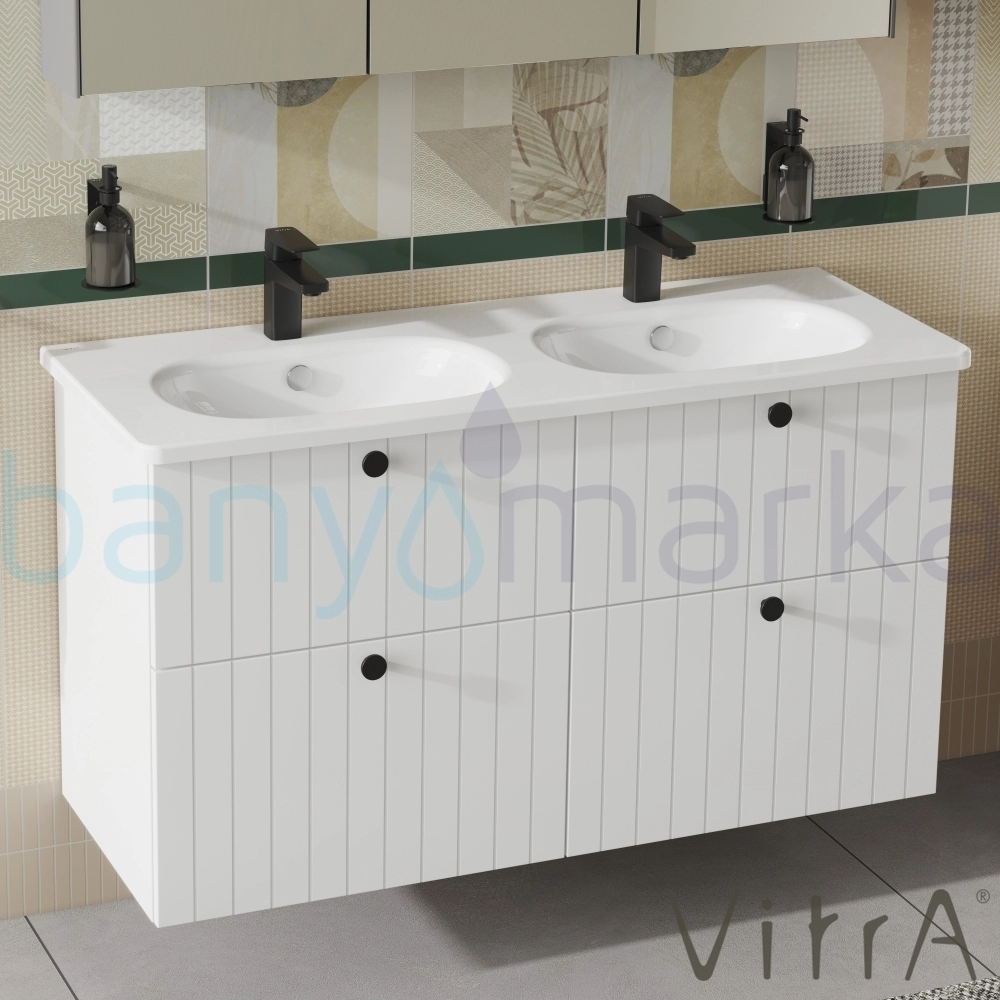 Vitra Root Groove Dört Çekmeceli Lavabo Dolabı, 120 cm, Mat Beyaz (Yuvarlak Lavabo Dahil)
