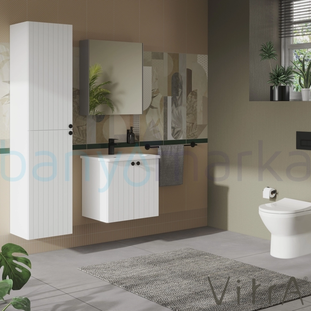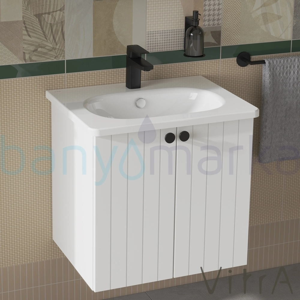 Vitra Root Groove Kapaklı Lavabo Dolabı, 60 cm, Mat Beyaz (Yuvarlak Lavabo Dahil)
