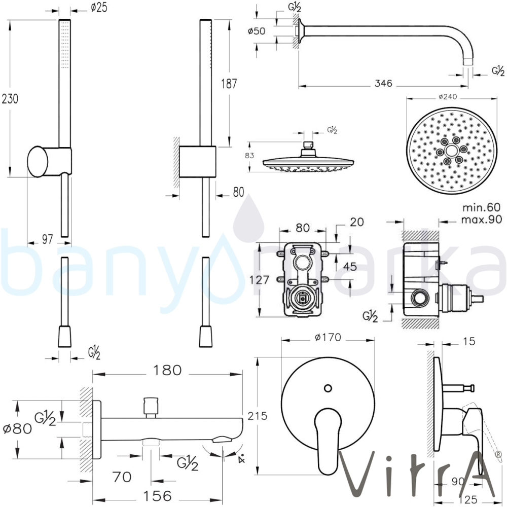 | Uyarı ve Genel Açıklamalar: | Root Round ankastre banyo bataryası (V-Box sıva üstü grubu) (A42727XX) V-Box (sıva altı grubu) (A41949) Origin 1F el duşu takımı (A45543XX) Bliss 2F duş başlığı (A45742XX) Duvardan dirsek (A45652XX) Root Round çıkış ucu (el duşu çıkışlı) (A43126XX) Soft Bakır sete dahildir. |