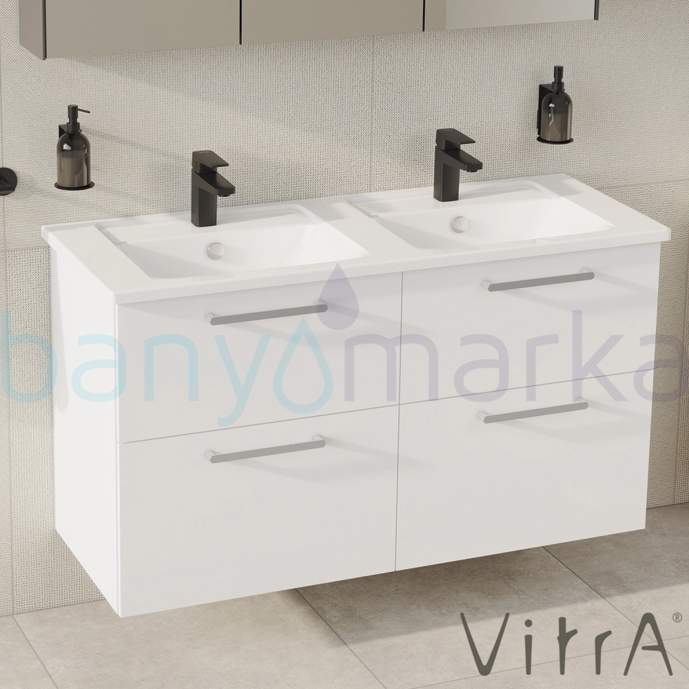 Vitra Root Flat Dört Çekmeceli Lavabo Dolabı, 120 cm, Parlak Beyaz (Köşeli Çift Lavabo Dahil)
