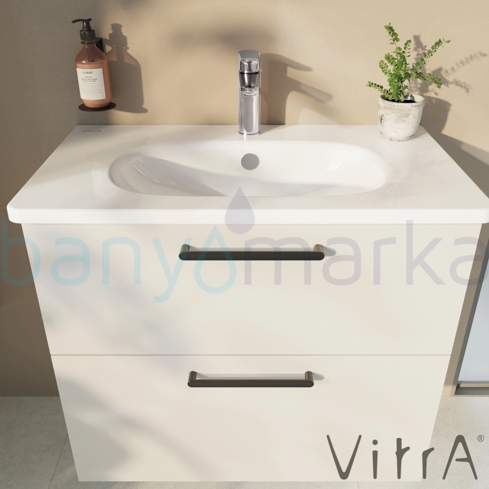 Vitra Root Flat İki Çekmeceli Lavabo Dolabı, 80 cm, Parlak Beyaz (Yuvarlak Lavabo Dahil)
