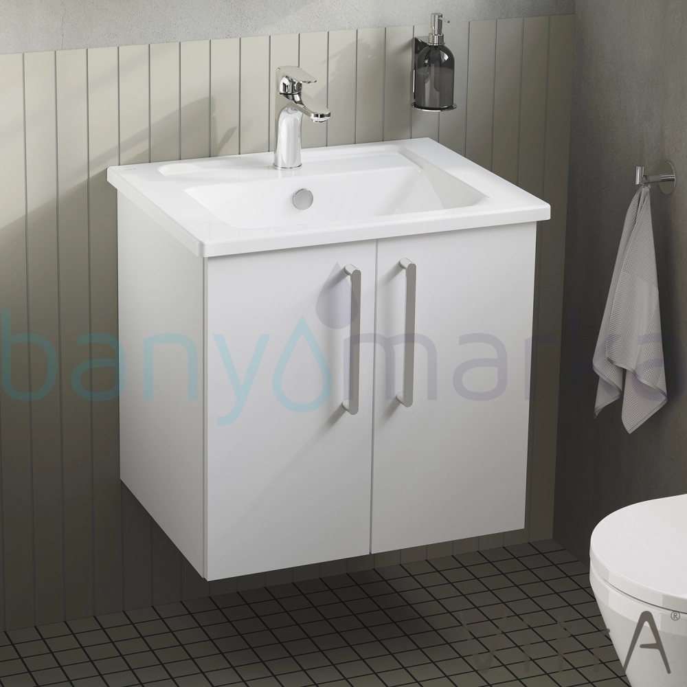 Vitra Root Flat Kapaklı Lavabo Dolabı, 60 cm, Parlak Beyaz (Köşeli Lavabo Dahil)