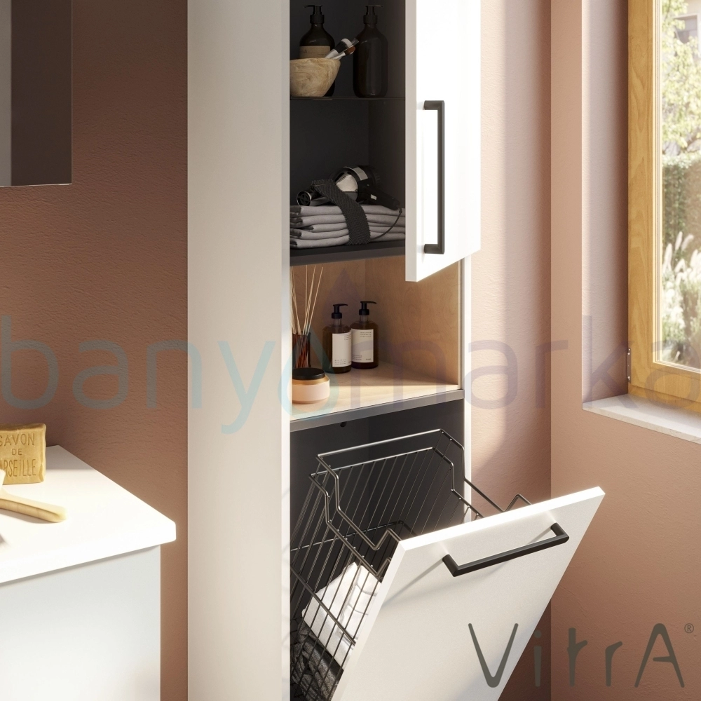 Vitra Root Flat Kısa Boy Dolabı (Sağ), 40 cm, Çamaşır Sepetli, Parlak Beyaz
