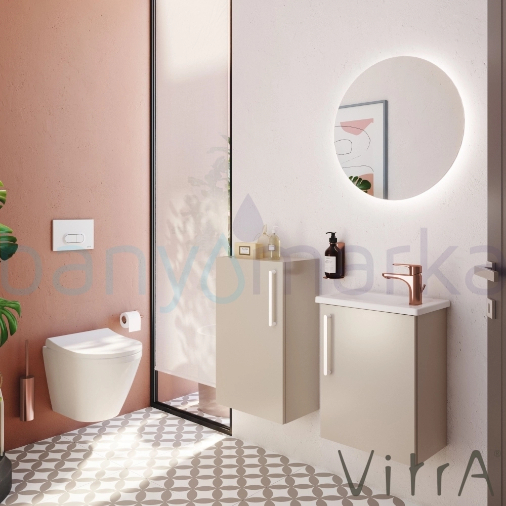 Vitra Root Flat Kapaklı Kompakt Lavabo Dolabı, 45 cm, Parlak Sahra Beji (Köşeli Lavabo Dahil-Sağ)