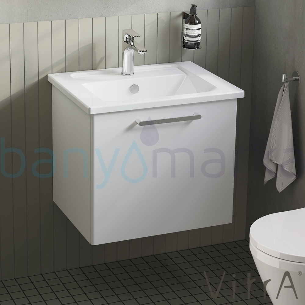 Vitra Root Flat Tek Çekmeceli Lavabo Dolabı, 60 cm, Parlak Beyaz (Köşeli Lavabo Dahil)