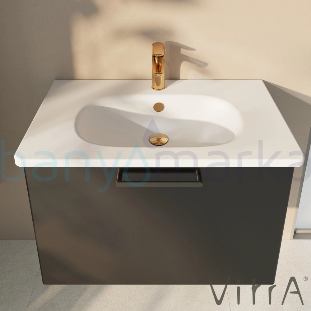 Vitra Root Flat Tek Çekmeceli Lavabo Dolabı, 80 cm, Parlak Antrasit (Yuvarlak Lavabo Dahil)