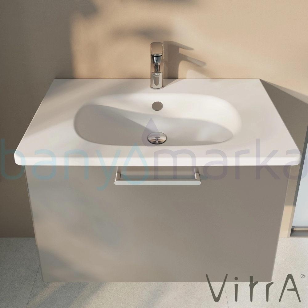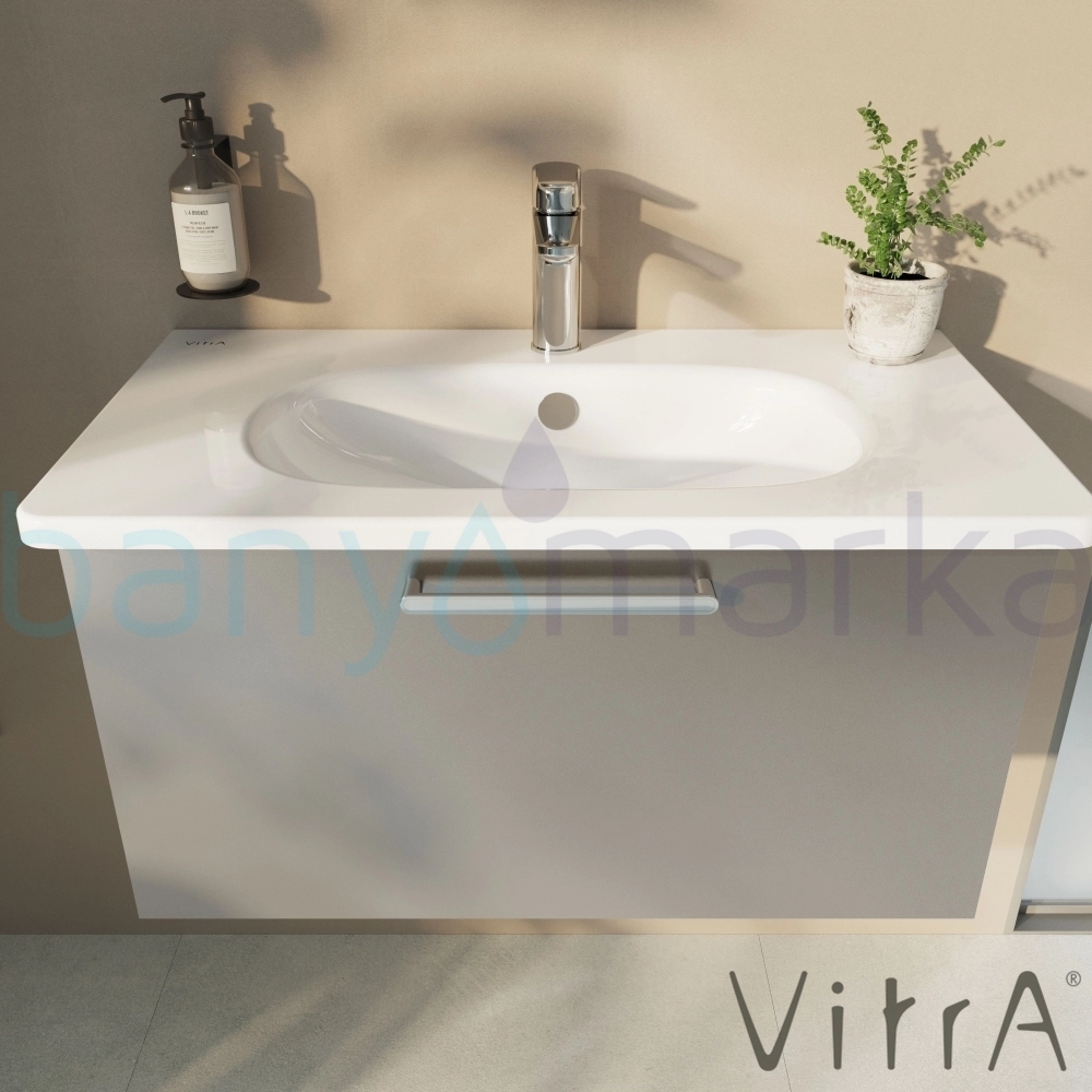 Vitra Root Flat Tek Çekmeceli Lavabo Dolabı, 80 cm, Parlak İnci Grisi (Yuvarlak Lavabo Dahil)