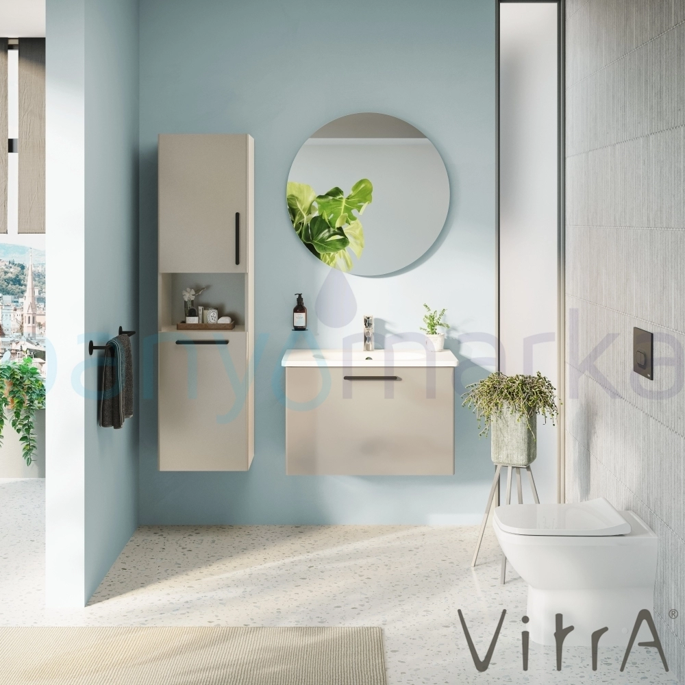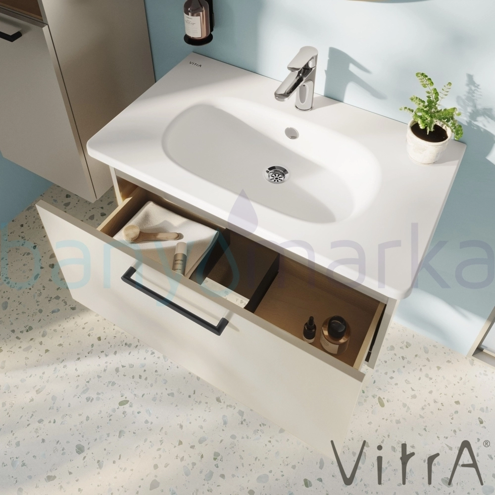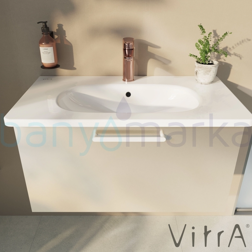Vitra Root Flat Tek Çekmeceli Lavabo Dolabı, 80 cm, Parlak Sahra Beji (Yuvarlak Lavabo Dahil)