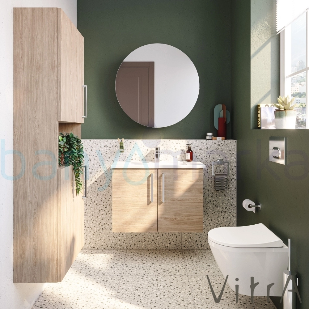 Marka: Vitra Ürün Adı: Vitra Root Flat Dar-Kısa Boy Dolabı, 55 cm, Doğal Meşe Ürün Kodu: 66247 Seri: Root Flat Renk: Doğal Meşe Ölçü: 57x27x155 cm Montaj Tipi: Asma Kapak Özelliği: Kulplu, Yavaş Kapanır Gövde Malzemesi: Melamin Kapak Malzemesi: Melamin Yetkili Servis Hizmeti: Var Ücretsiz Montaj: Yok Garanti Süresi: 2 yıl Üretim Yeri: Türkiye Uyarı ve Genel Açıklamalar: Krom Bar Kulp dahildir; siyah kulp istenirse 66521, beyaz kulp istenirse 66772 kodundan sipariş edilebilir. Kapak açılım yönü montaj esnasında sağ/sol istenen yönde ayarlanabilir. Cam raflı.