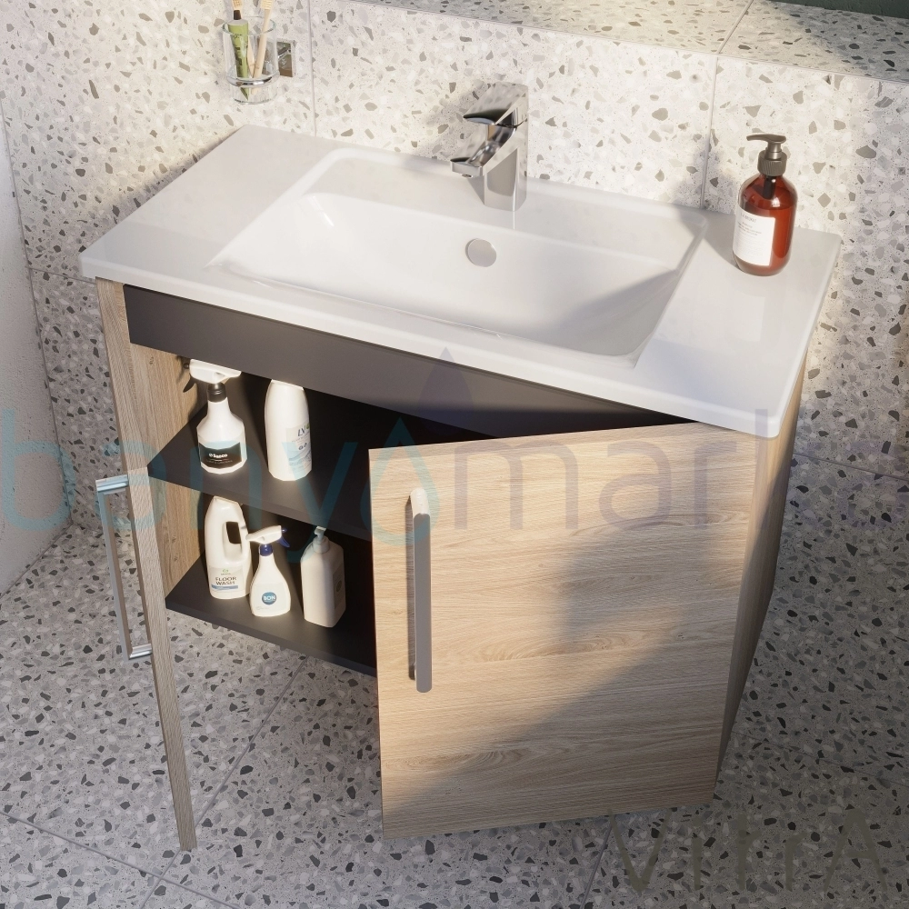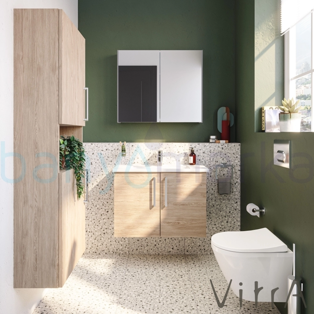 Vitra Root Flat Kapaklı Dar Lavabo Dolabı, 80 cm, Doğal Meşe (Köşeli Lavabo Dahil)