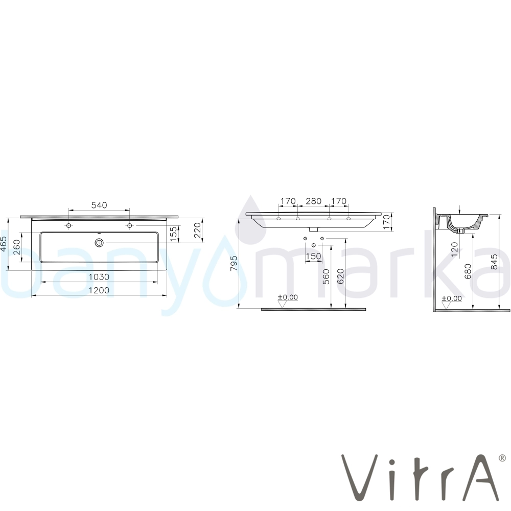 | Ürün Adı: | Vitra S20 Square Çift Armatür Delikli Etajerli Lavabo, 120 cm |