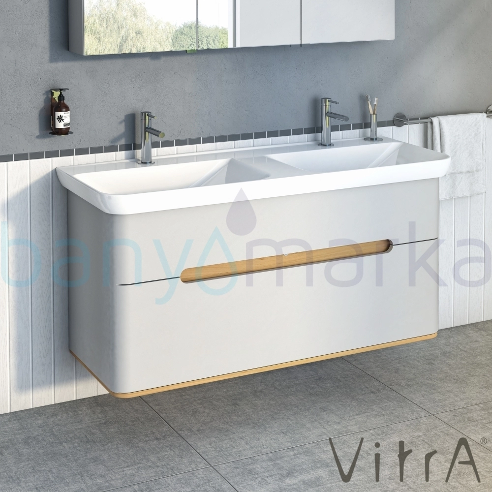 | Ürün Adı: | Vitra Sento Çift Çekmeceli, Çift Lavabo Hazneli Lavabo Dolabı, Ayaksız, 130 Cm, Mat Açık Gri |