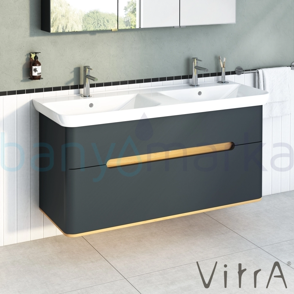 | Ürün Adı: | Vitra Sento Çift Çekmeceli, Çift Lavabo Hazneli Lavabo Dolabı, Ayaksız, 130 Cm, Mat Antrasit |