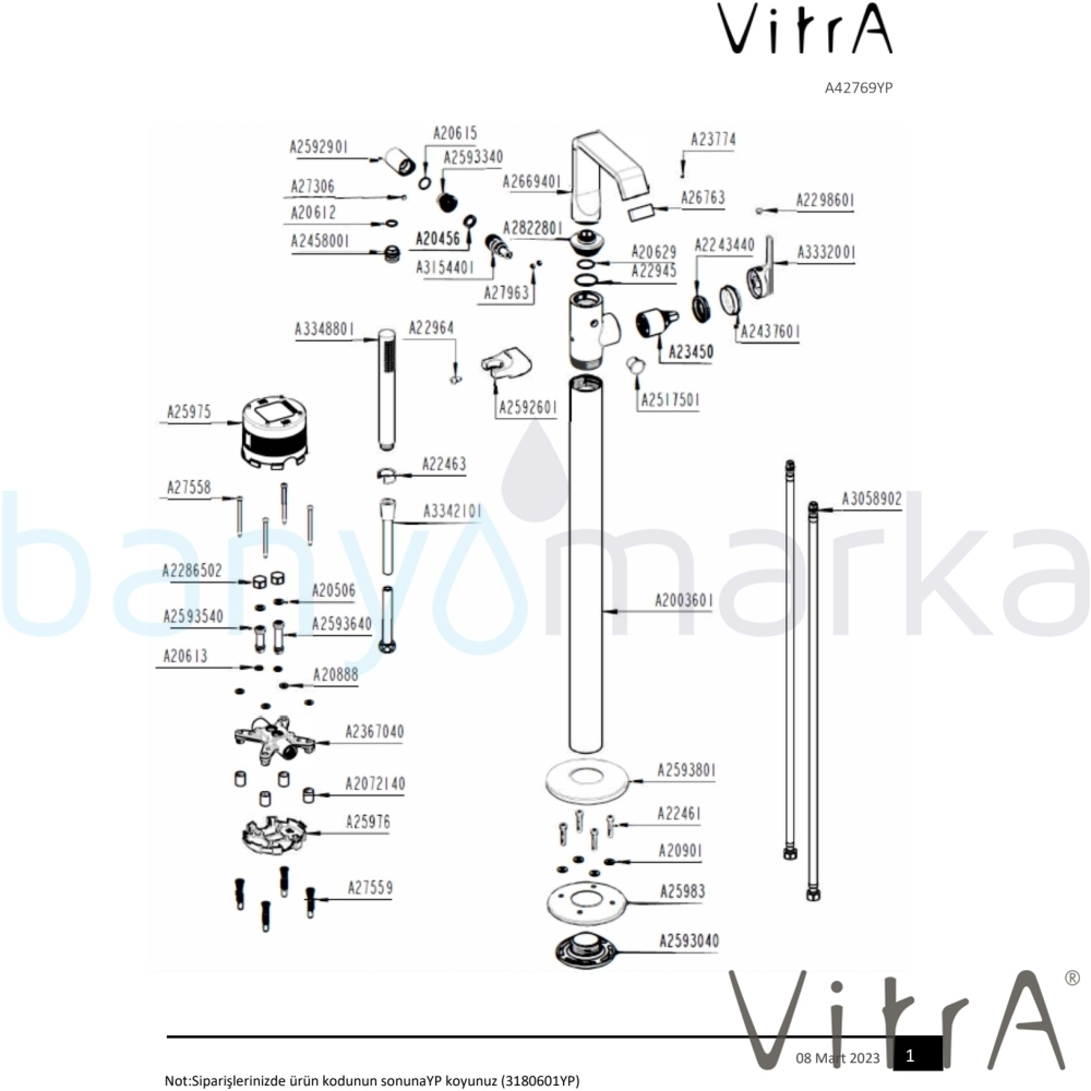 | Ürün Adı: | Vitra Suit Yerden Küvet Bataryası, El Duşlu, Krom |