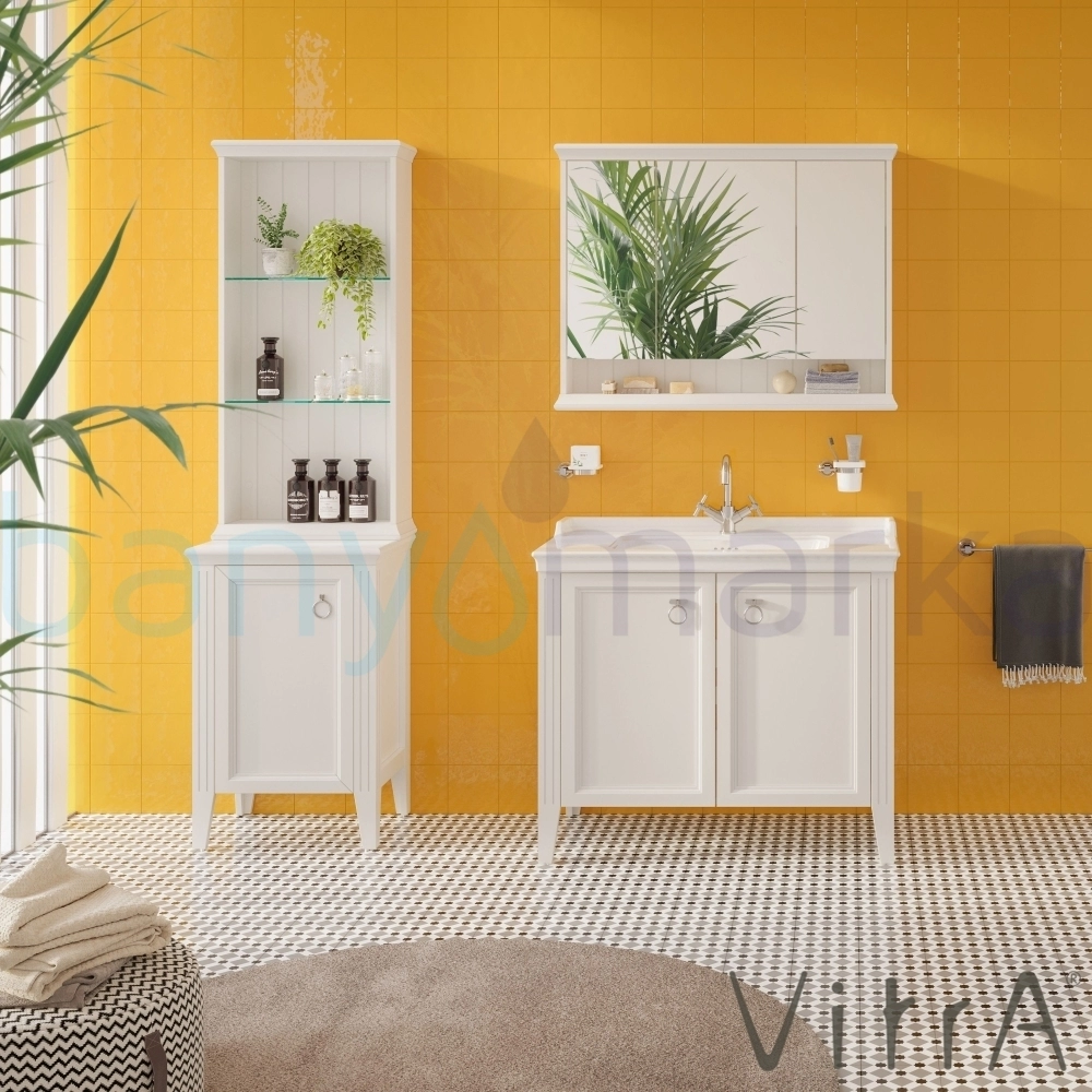 Vitra Valarte Kapaklı Etajerli Lavabo Dolabı, 100 cm, Mat Beyaz (Lavabo Dahil-Krom Kulplu)