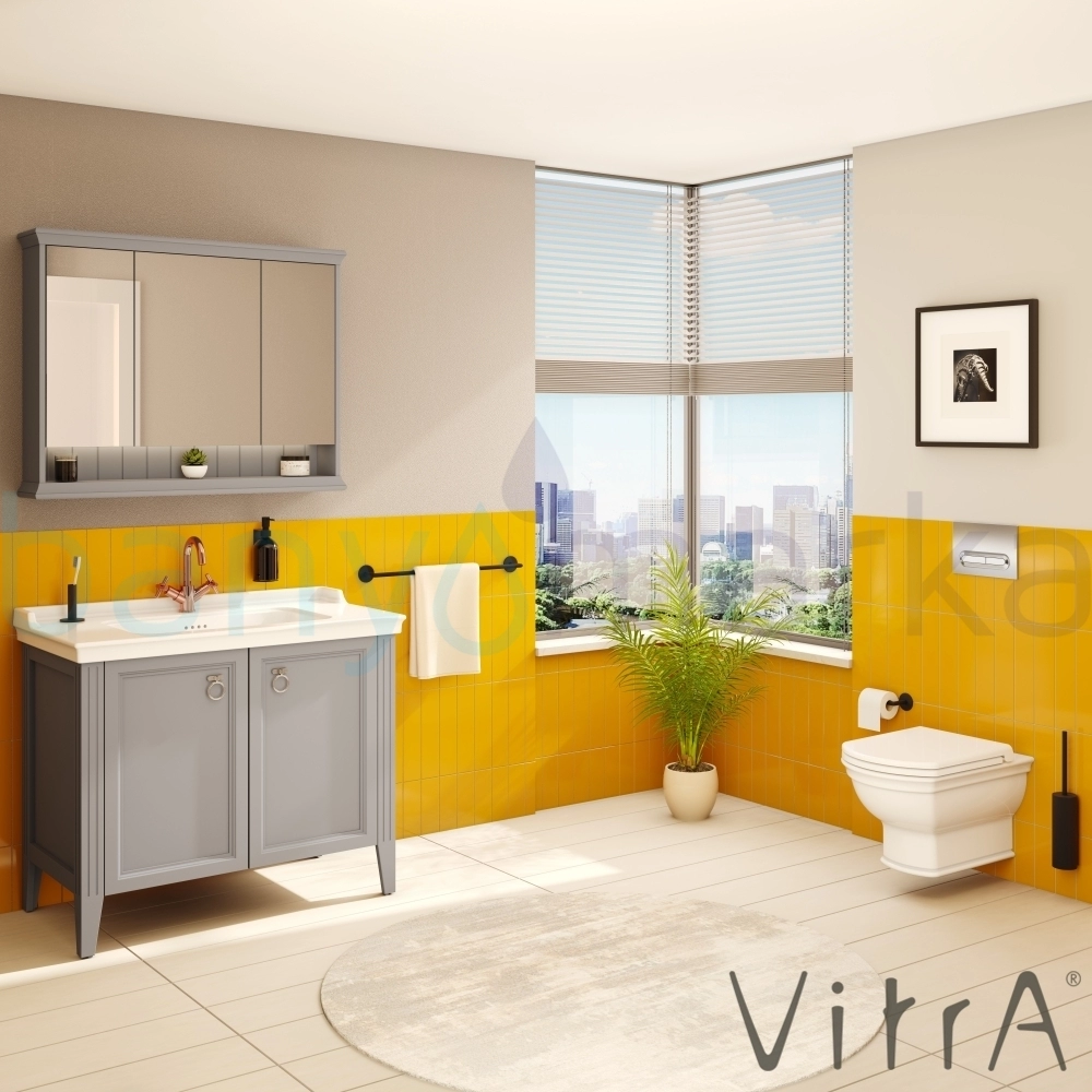 Vitra Valarte Kapaklı Etajerli Lavabo Dolabı, 100 cm, Mat Gri (Lavabo Dahil-Krom Kulplu)