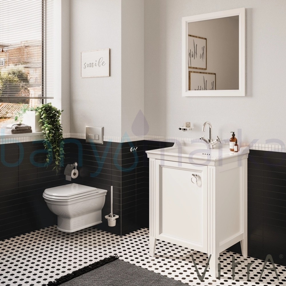 Vitra Valarte Kapaklı Etajerli Lavabo Dolabı, 65 cm, Mat Beyaz (Lavabo Dahil-Krom Kulplu Sağ)