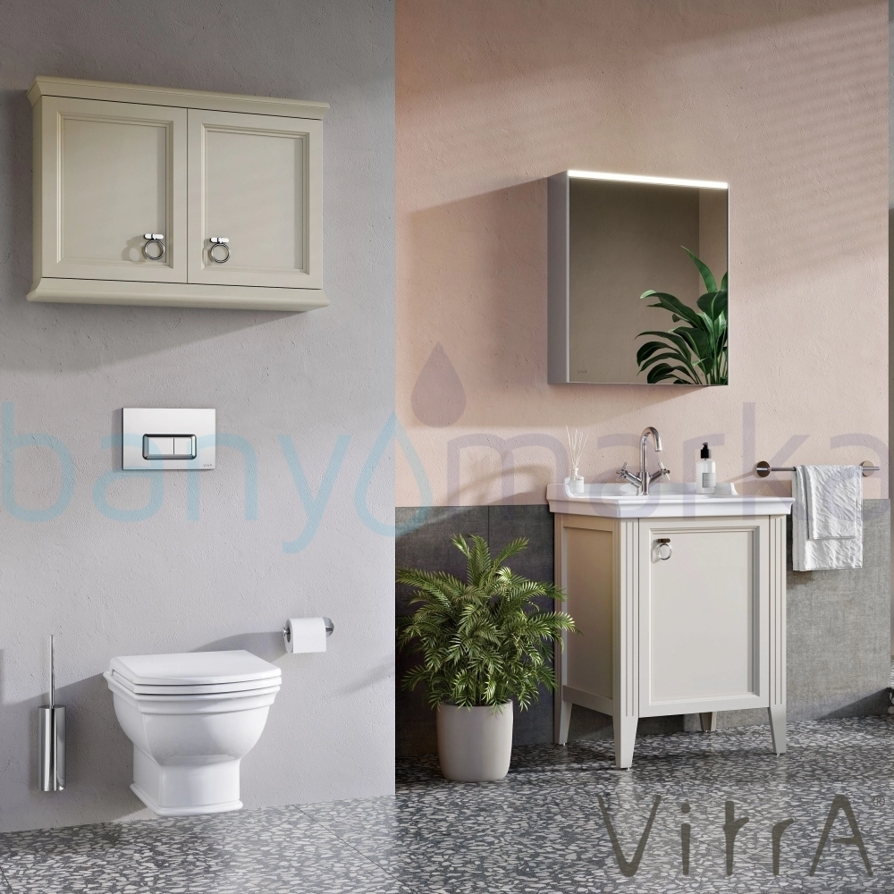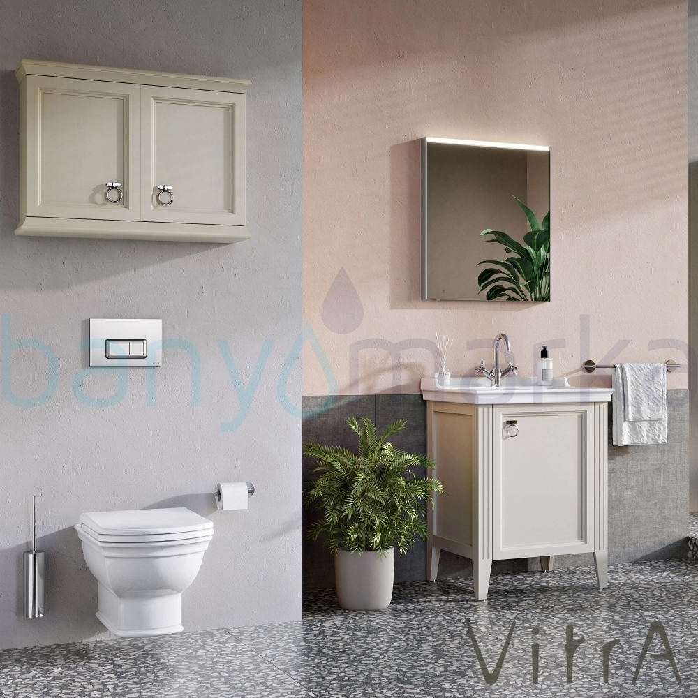Vitra Valarte Kapaklı Etajerli Lavabo Dolabı, 65 cm, Mat Fildişi (Lavabo Dahil-Krom Kulplu Sağ)