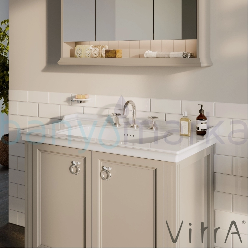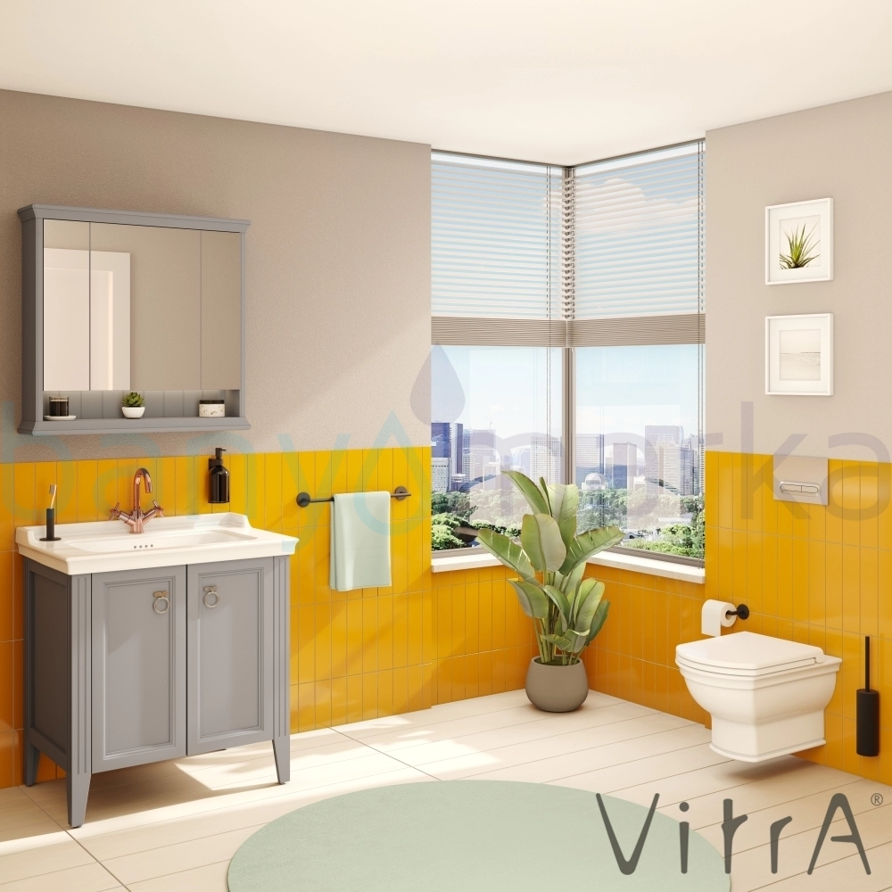 Vitra Valarte Kapaklı Etajerli Lavabo Dolabı, 80 cm, Mat Gri (Lavabo Dahil-Krom Kulplu)
