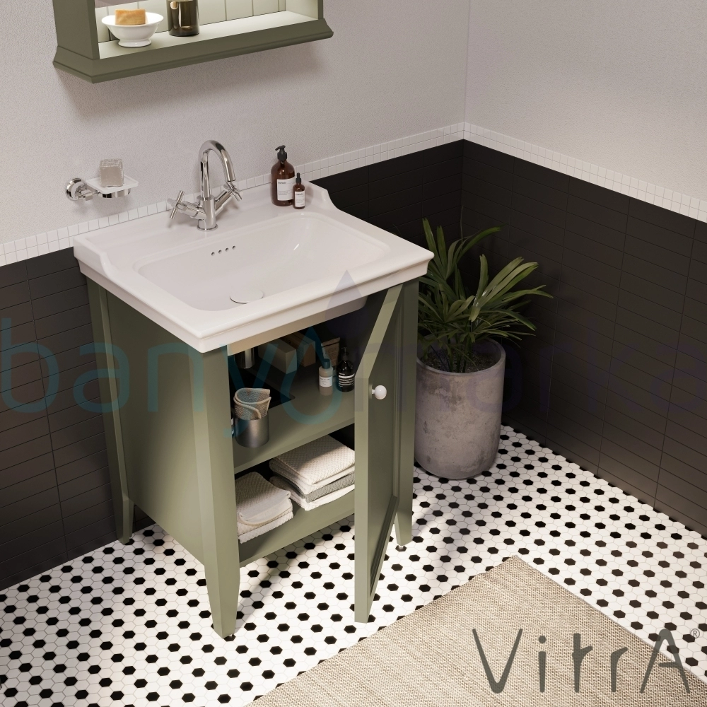 Vitra Valarte Neo Kapaklı Etajerli Lavabo Dolabı, 65 cm, Retro Yeşil (Sol)